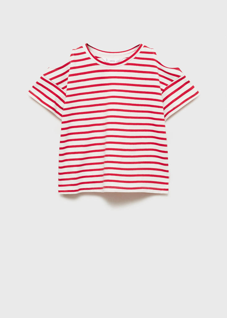 100% قطن. نقشة مخططة. فتح الكتف. ياقة دائرية. أكمام قصيرة