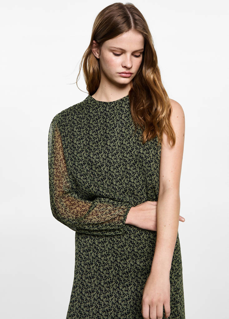 نسيج انسيابي. نقشات مجردة. ياقة دائرية. كم طويل منتفخ. أسورة مرنة. إطلالة كاملة