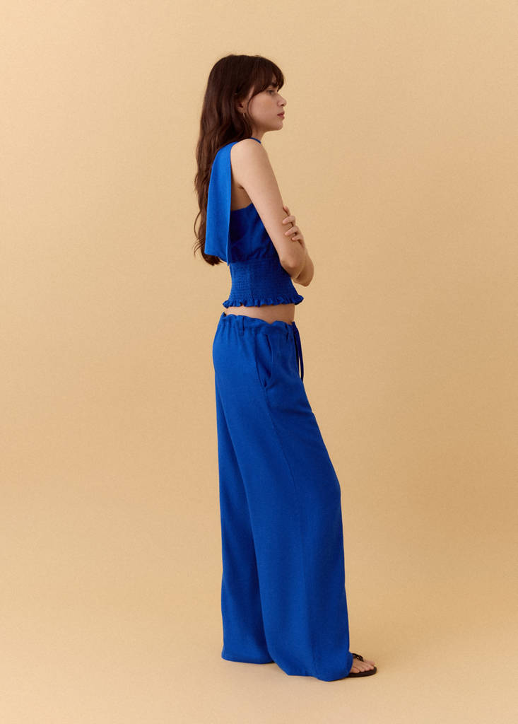 بنطال من الكتان المختلط بتفصيلة مستقيمة