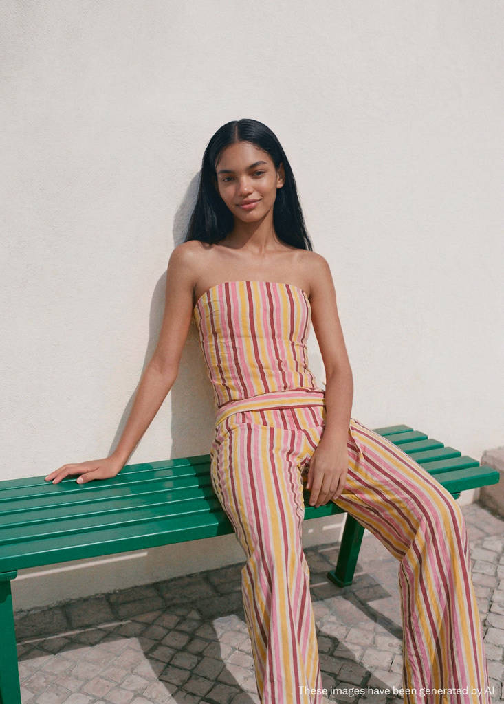 قماش انسيابي. نقش مشكل ومخطط. تصميم مستقيم. تصميم طويل. تفاصيل ربطة في الخصر. إغلاق بسحاب جانبي. إطلالة كاملة
