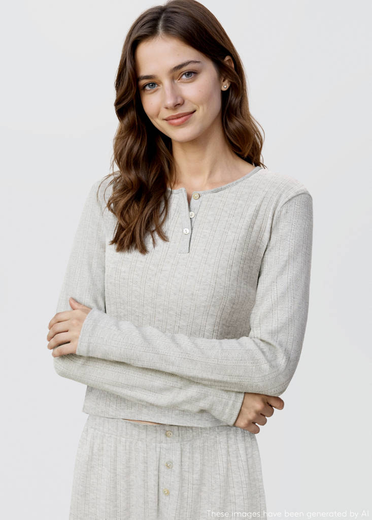 عبوة بيجاما طويلة. نسيج قطن. قماش انسيابي. تصميم طويل. ياقة مستديرة مع قفل أزرار. أكمام طويلة. بنطال طويل. خصر مطاطي