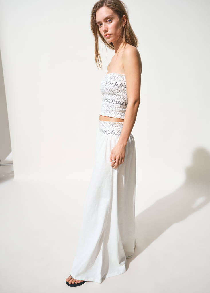 نسيج 100% قطن. تصميم مستقيم. تصميم طويل. لوحة مجمعة عند الخصر. تفاصيل مطرزة. إطلالة كاملة