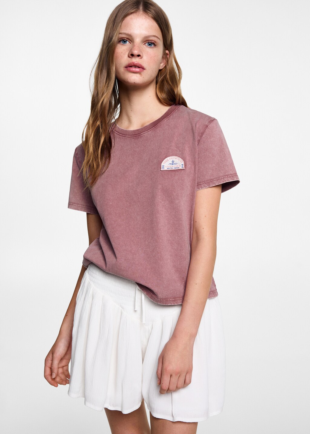 100% قطن. رقعة تزيينية. تصميم مستقيم. ياقة دائرية. كم قصير.