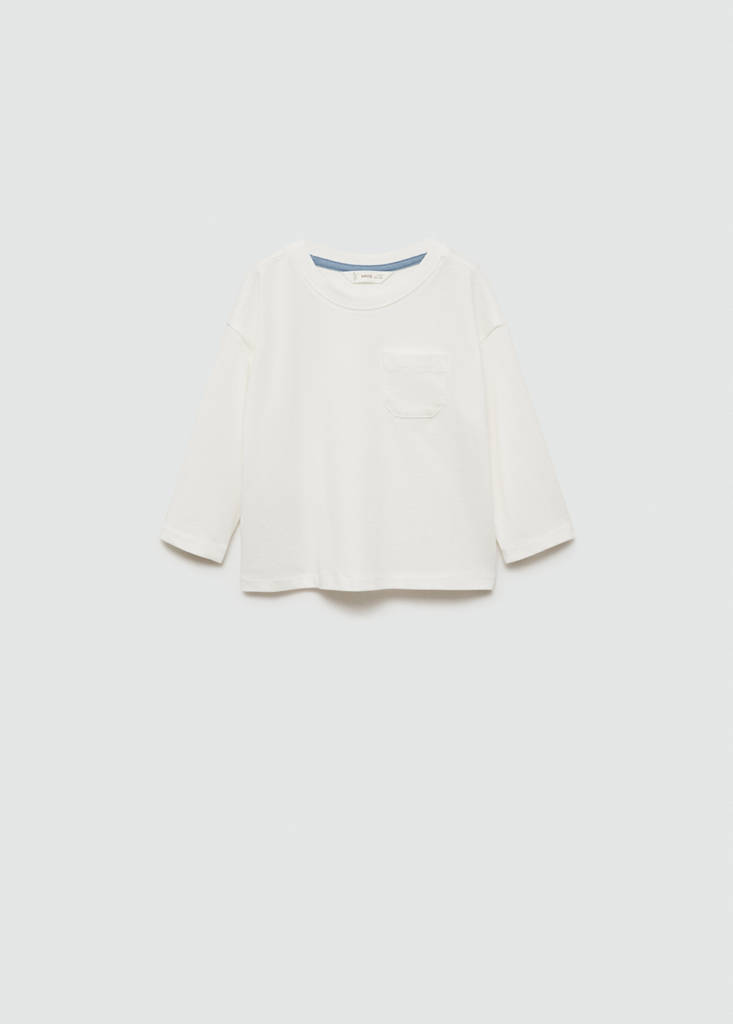 Long sleeve cotton t-shirtCurrent price [LBP 849,000.00 ]LBP 849,000.00Select a colourOff WhiteSelect your size9-12 months (80cm)12-18 months (86cm)18-24 months (92cm)2-3 years (98cm)3-4 years (104cm)4-5 years (110cm)5-6 years (116cm)DimensionsAdd to WishlistSee lookFree delivery to storeLong design. Straight design. Chest pocket. Round neck. Short sleevesDetails, composition and careStore availabilityItem qualitiesRecycled cottonAt least 20%This fibre is obtained from pre- and post-consumer textile waste that is transformed into new fabrics.