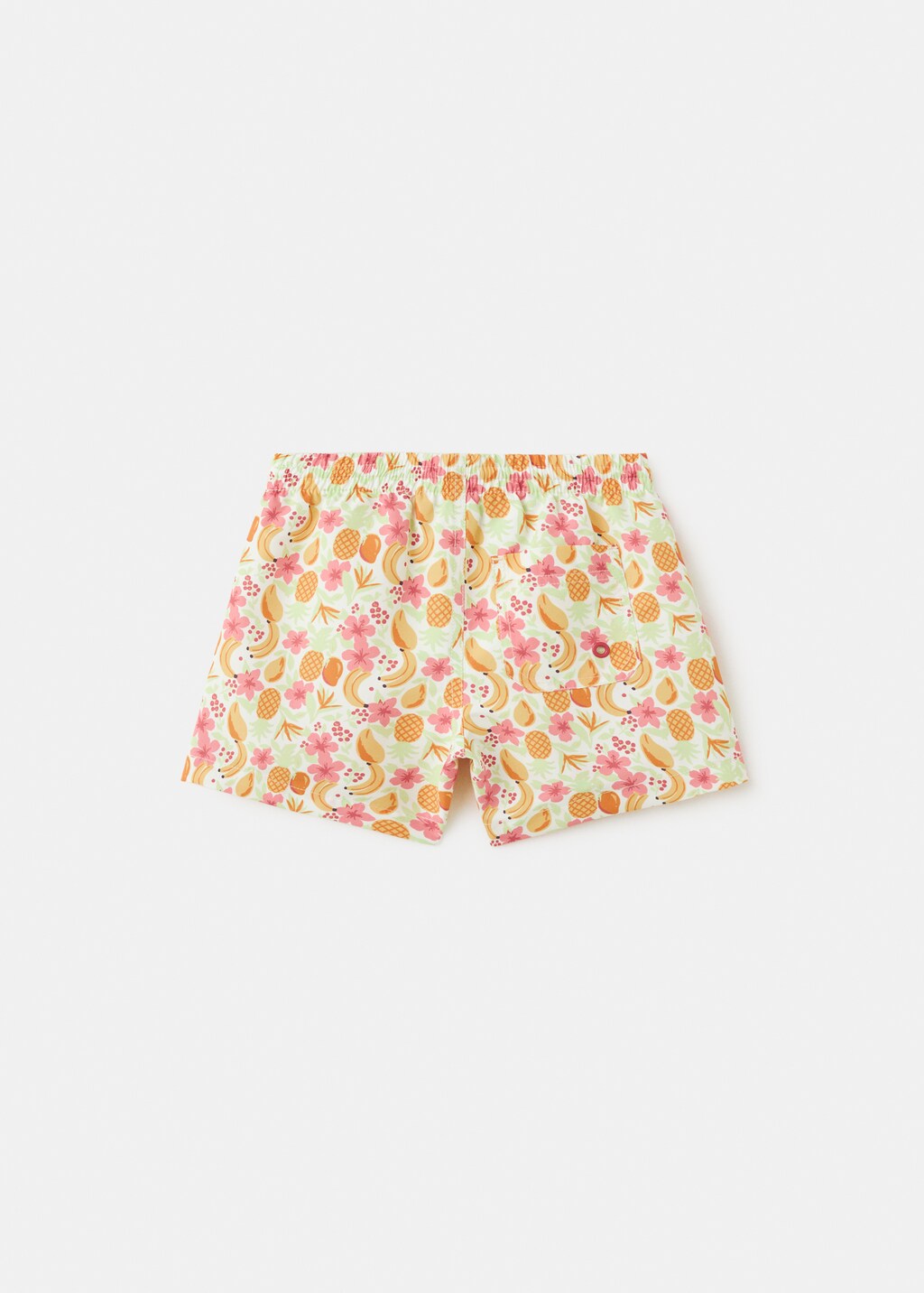 Stretch fabric. Straight design. Short design. Printed design. Fruits design. Elastic waist with adjustable drawstring. Contrasting cord. Two side pockets. Swimwear collection.