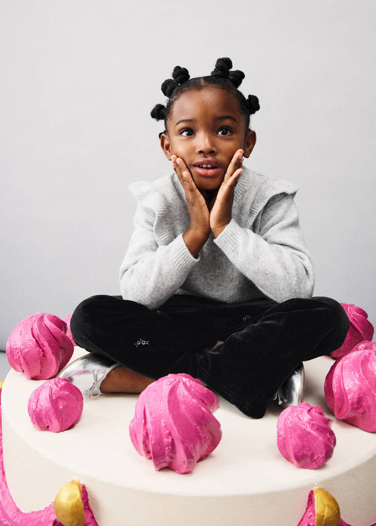 Knitted fabric. Lurex fabric. Straight design. Round neck. Long sleeves. Frill detail on the shoulders. Ribbed finishes. Button closure at the back. Party and events collection. Christmas Collection.