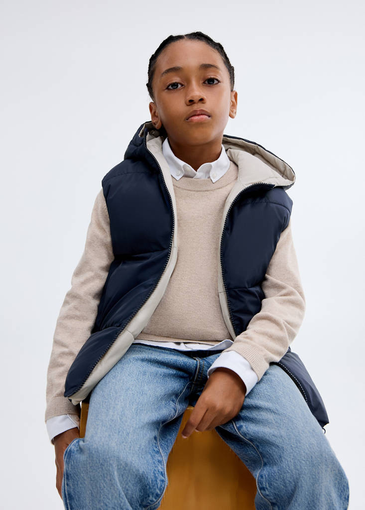 Waterproof reversible giletCurrent price [LBP 3,799,000.00 ]LBP 3,799,000.00Select a colourNavySelect your size5-6 years (116cm)7-8 years (128cm)9-10 years (140cm)11-12 years (152cm)13-14 years (164cm)Size guideAdd to WishlistSee lookFree delivery to storeSee availability in storeDescriptionQuilted fabric. Waterproof fabric. Reversible design. Straight design. Two-tone. With hood. Sleeveless. Two side pockets. Zip closure.See detailsShare