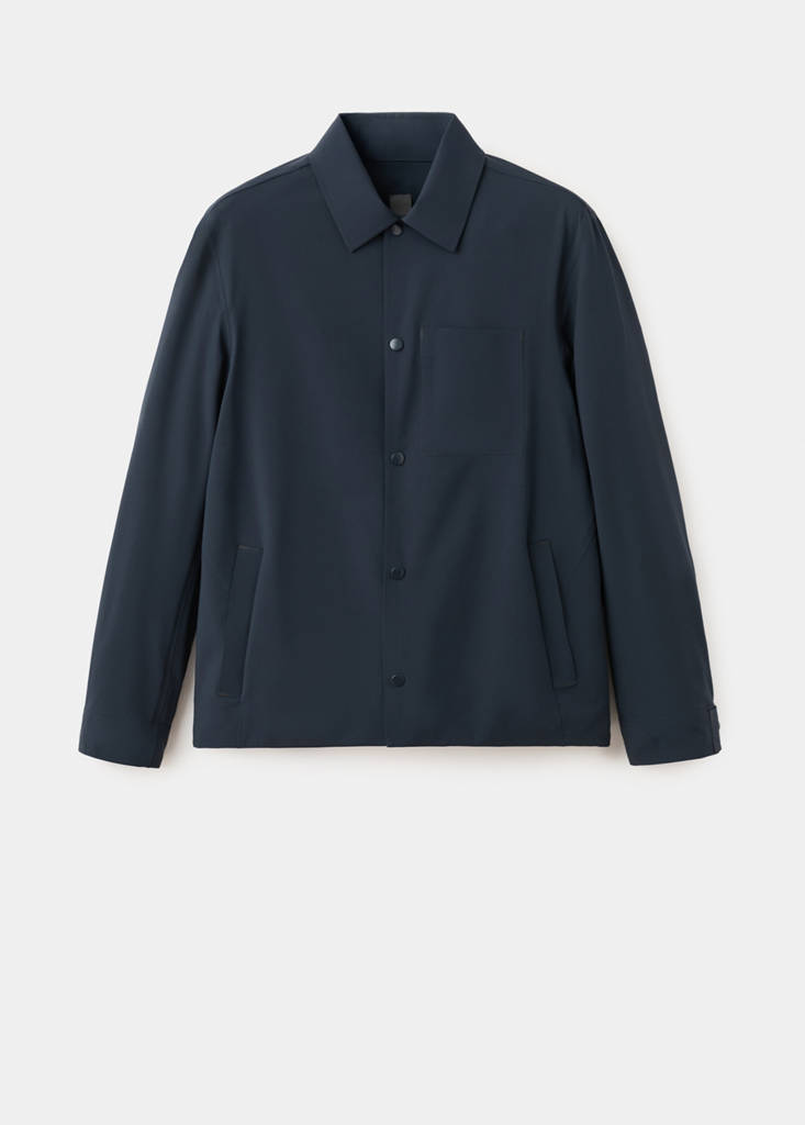 Performance Collection. Thermoregulating: This fabric offers optimal breathability to keep you at a stable temperature. Comfort Stretch: Stretch fabric for added comfort. Water-repellent: The durable finish of this garment protects against light rain, repelling contact with water and raindrops. Shirt collar. Concealed snap button fastening. Patch and flap chest pocket. Two front welt pockets and water-repellent zip closure. Long sleeves with adjustable loops. Without inner lining. Inner pockets. Inner seams with thermo-sealed reinforcement.