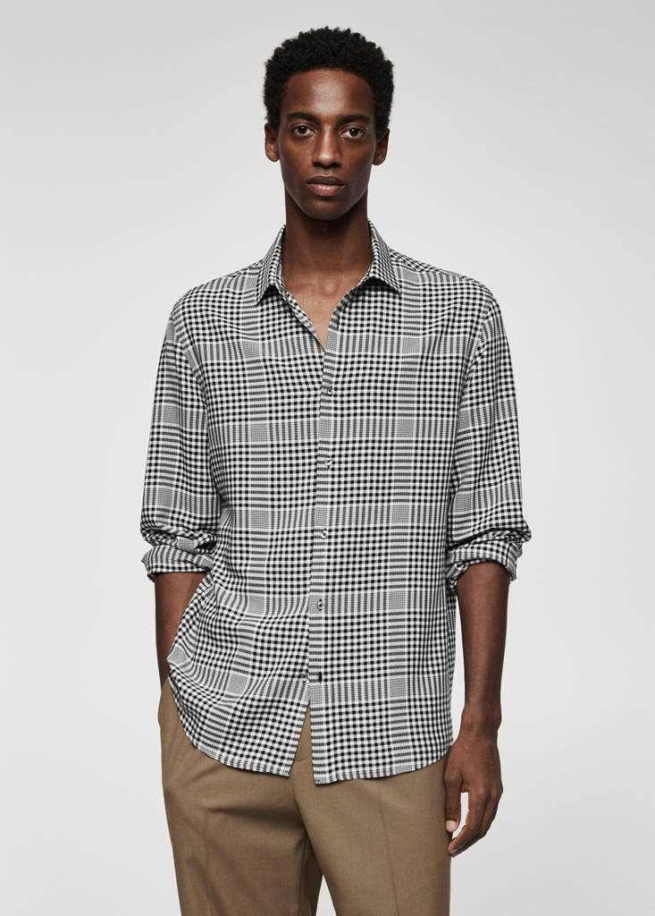 Regular fit. Viscose fabric. Light fabric. Shirt-style collar. Front button closure. Long sleeve with buttoned cuffs. Rounded hem