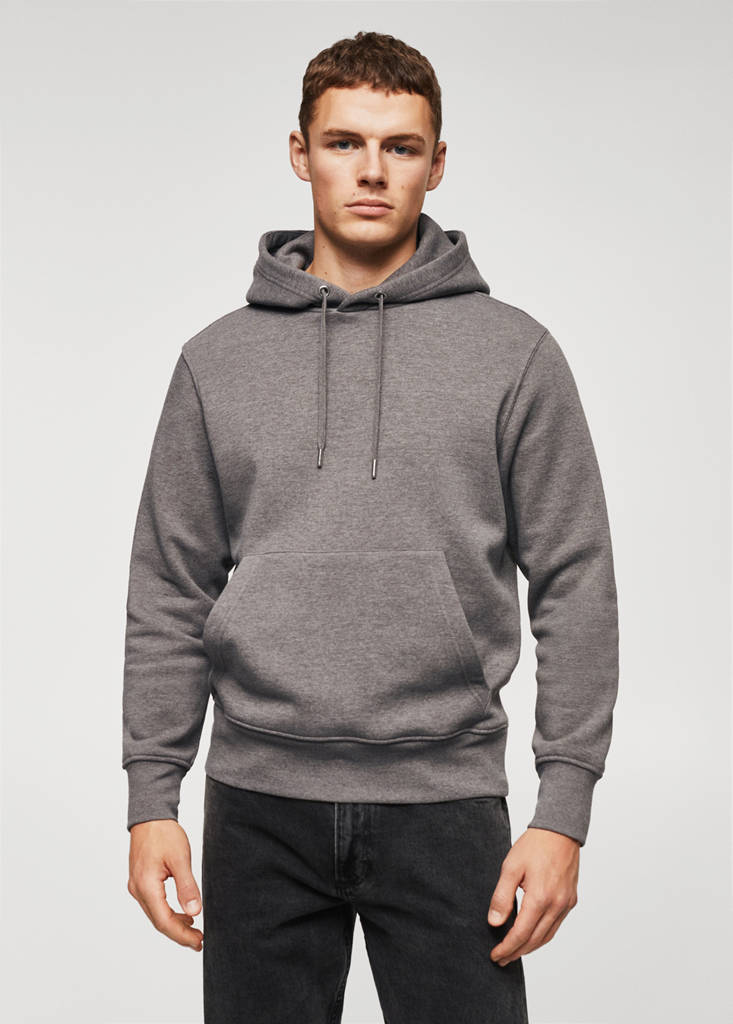Basics Collection. Online Exclusive. Regular fit. Sustainable cotton blend fabric. Drawstring hood. Long sleeve. Pouch pocket. Elastic finish. The model is 180 cm tall and is wearing a size 42