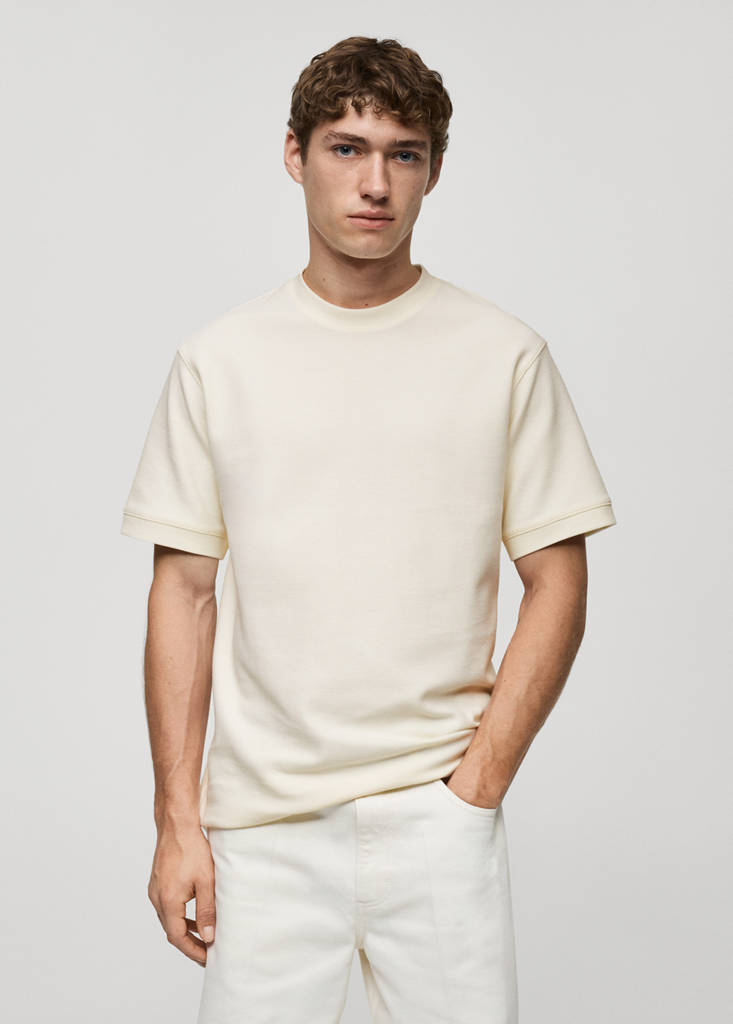 T-shirt with regular-fit structureCurrent price [LBP 3,699,000.00 ]LBP 3,699,000.00Select a colourEcruThe model is wearing size M and is 189cm tall.Select your sizeXSSMLXLXXLDimensionsAdd to WishlistSee lookFree delivery to storeRegular fit. Cotton blend fabric. Micro-structure finish. Round neck. Short sleeves. Straight hemDetails, composition and careStore availability