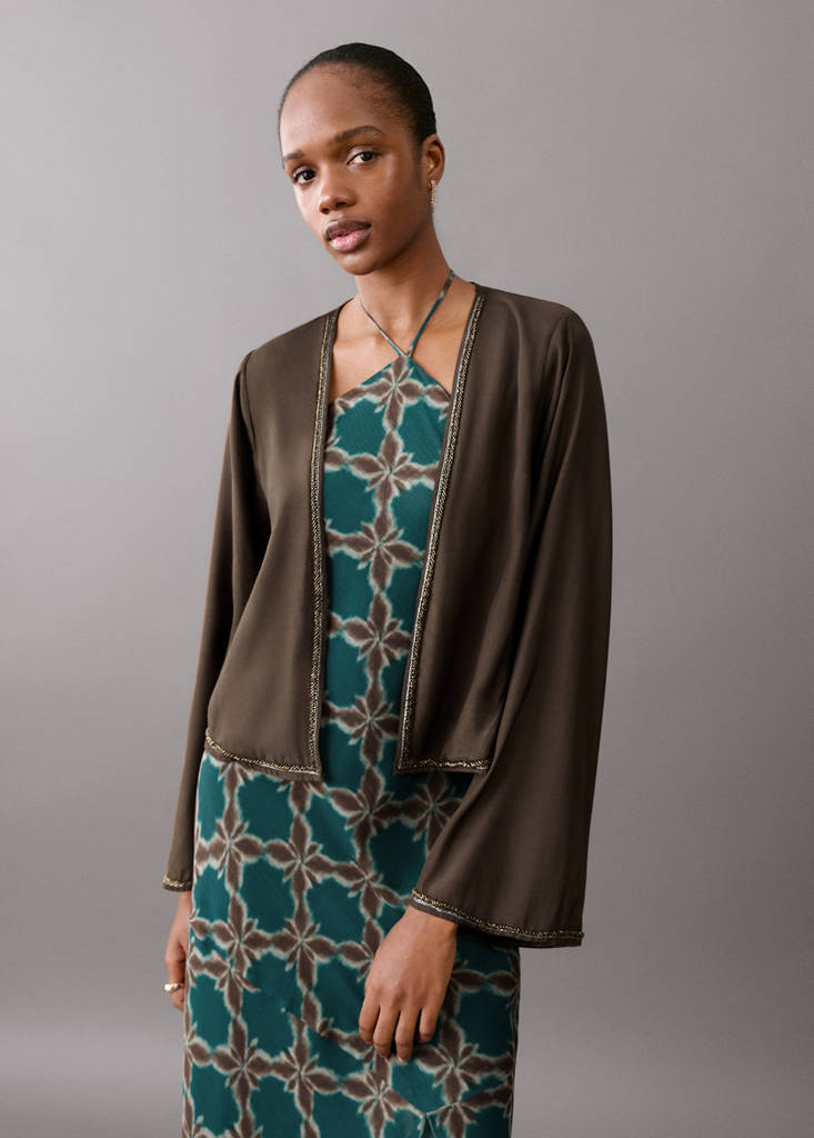 Fluid fabric. Sparkly detail. Embroidered detail. Long sleeves. No Fastening.