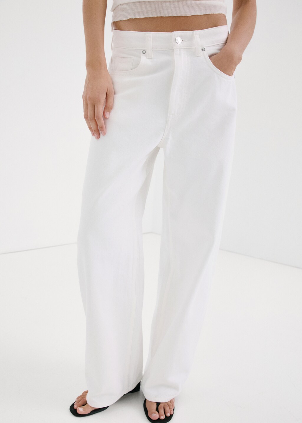 Balloon crop jeansCurrent price [LBP 4,699,000.00 ]LBP 4,699,000.00Select a colourWhiteThe model is wearing size 36 and is 178cm tall.Select your size3234363840424446Size guideAdd to WishlistSee lookFree delivery to storeSee availability in storeDescriptionDenim-style cotton fabric. Balloon Design. Crop design. Mid-rise. Belt loops. Five pockets. Front zipper and button closure.See detailsItem qualitiesRecycled cottonAt least 20%This fibre is obtained from pre- and post-consumer textile waste that is transformed into new fabrics.Share