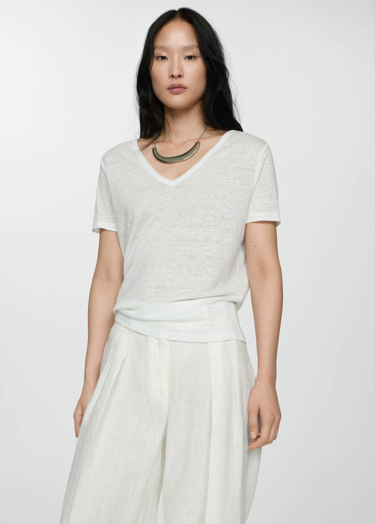 100% linen fabric. Straight design. V-neck. Short sleeves. No Fastening. Available Plus. Regular fit.