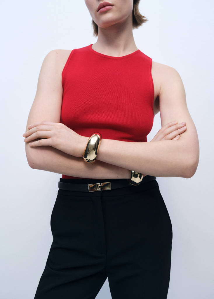 Fine knit fabric. Fitted design. Round neck. Sleeveless. No Fastening. Available Plus