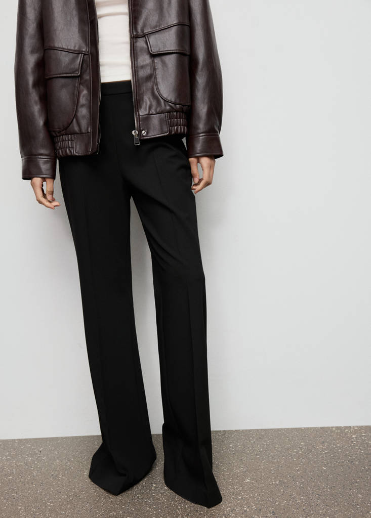 Long design. Flare design. High waist. Side zip closure. Inner lining.