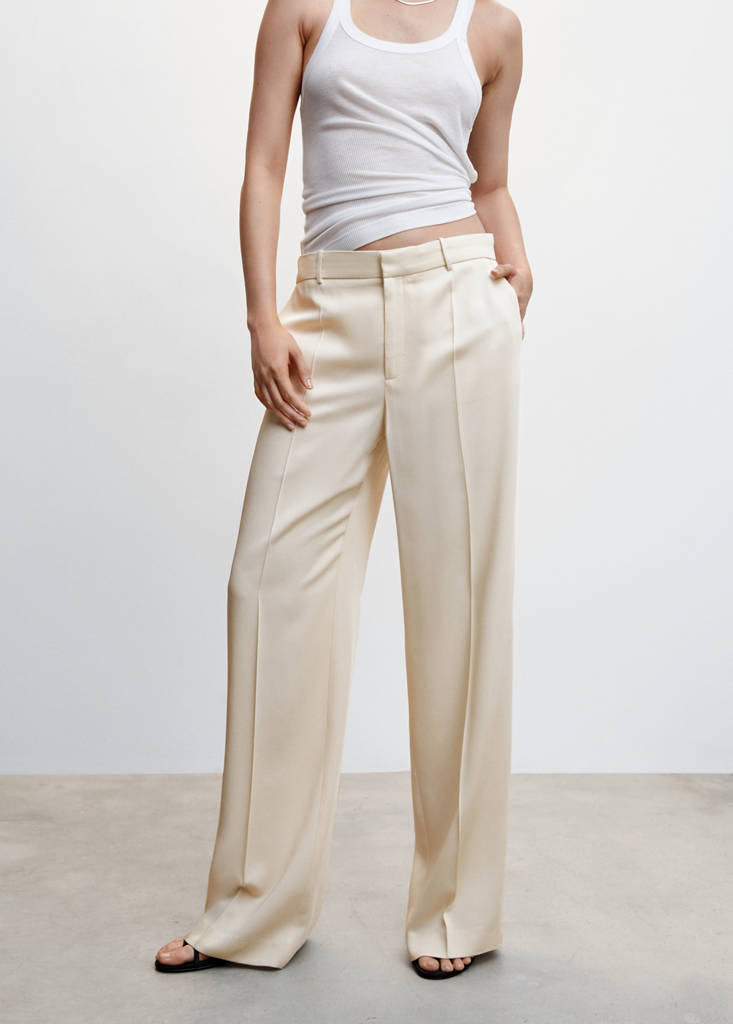 Flowy fabric. Wide-leg design. Long design. Medium waist. Loops. Two side pockets. Concealed button, hook and zip fastening. Dart detail. Co-ord