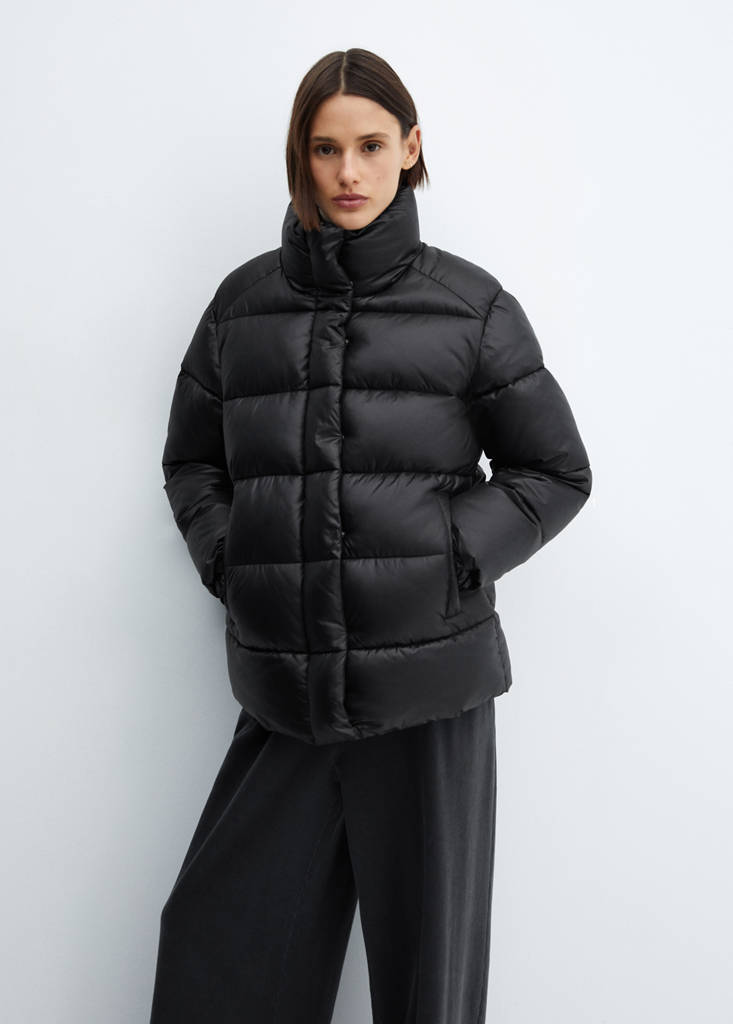 Gerades Design. Gestepptes Design. Rollkragen. Lange Ärmel mit Knopfmanschetten. Elastische Ärmelenden. Seitliche Reißverschlusstaschen. Innentasche. Front-Reißverschluss und Druckknopfverschluss. Futter. In Plus-Size erhältlich. Wasserabweisend: Die strapazierfähige Oberfläche dieses Kleidungsstücks schützt vor leichtem Regen und weist den Kontakt mit Wasser und Regentropfen ab