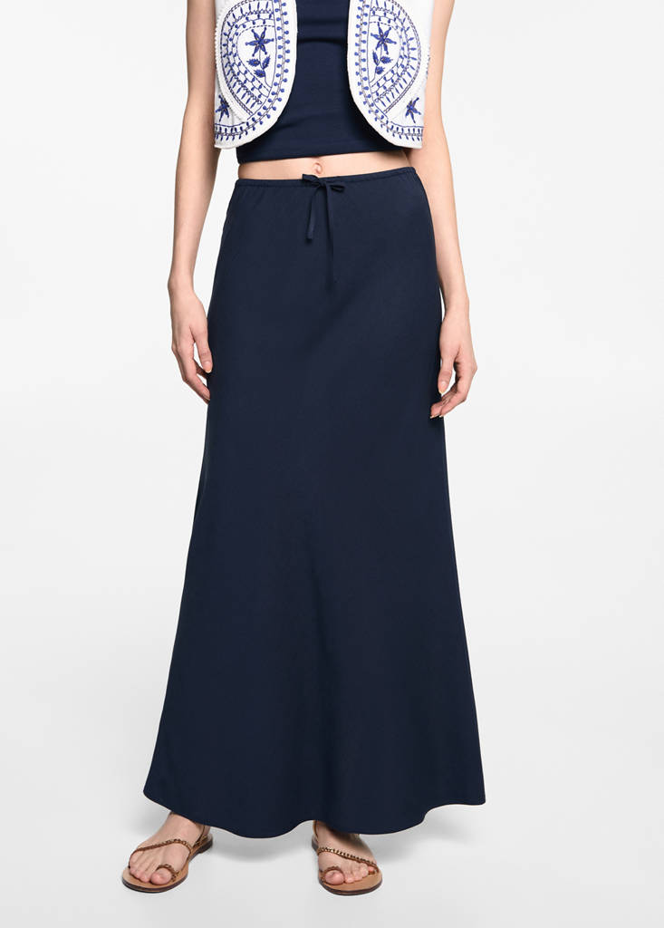 Leinenstoff. Gerades Design. Langes Design. Elastischer Bund. Schleifenverschluss