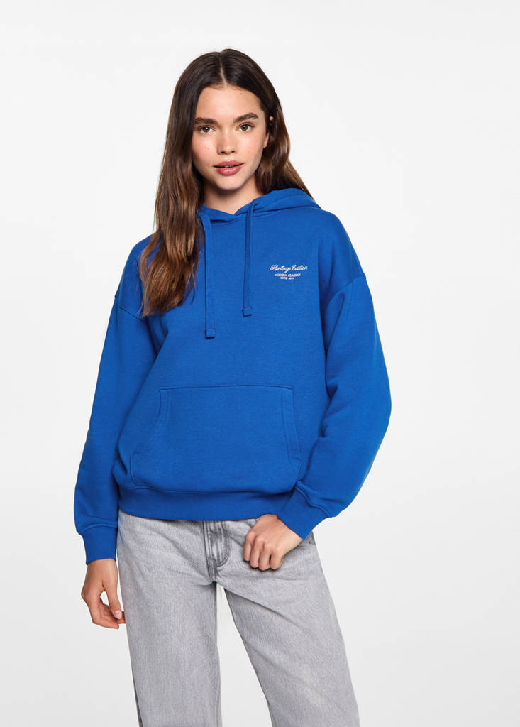 Baumwolle. Langes Design. Rundhalsausschnitt. Kapuze. Lange Ärmel. Aufgestickter Schriftzug. Kängurutasche. Back to School