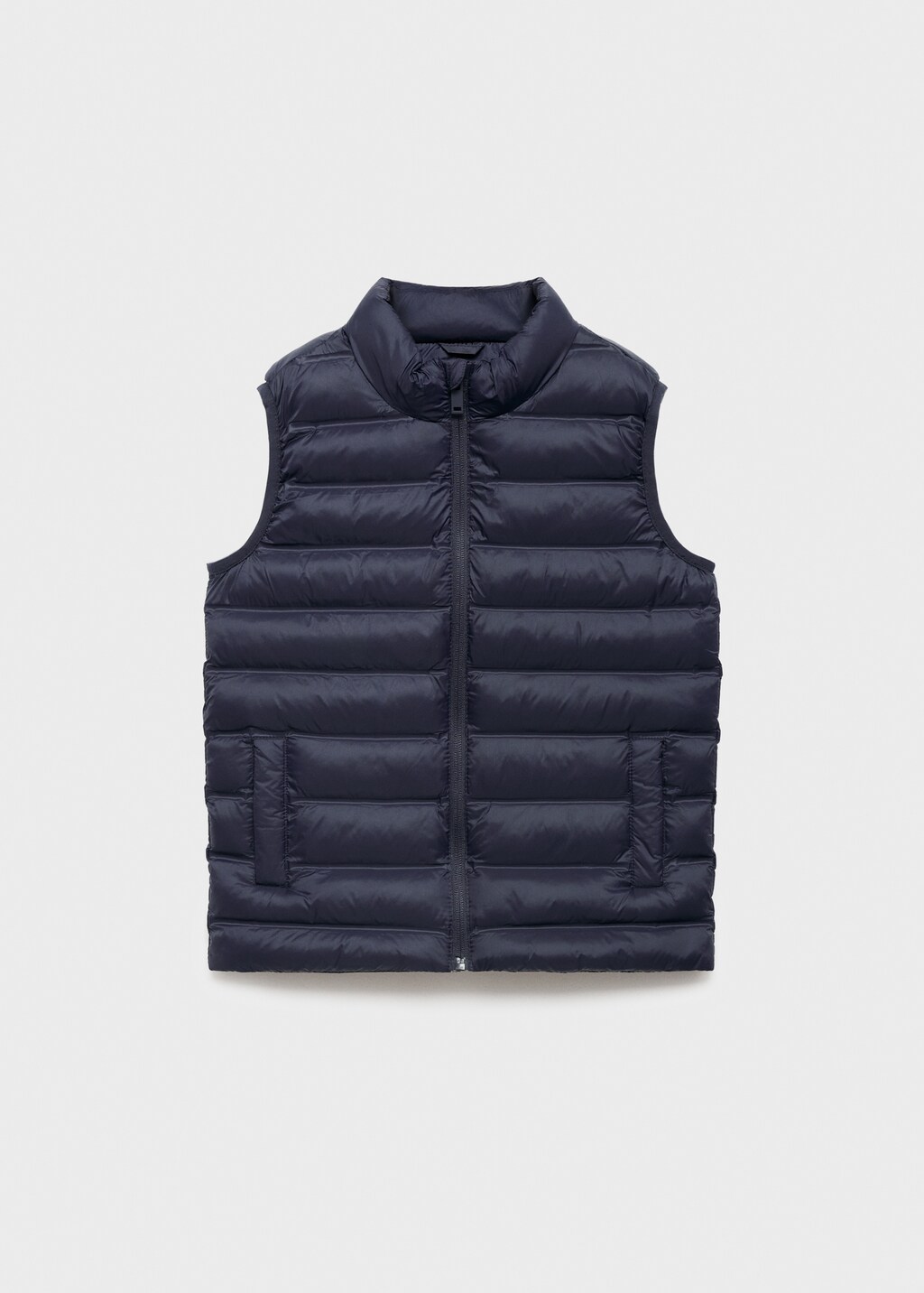 High/Wrap Collar. Standard Length. Straight Silhouette. Lightweight Flat Structure. Front Closure Location. Quilted fabric. Waterproof fabric. Straight Design. Straight collar. Sleeveless. Zip closure. Two side pockets.
