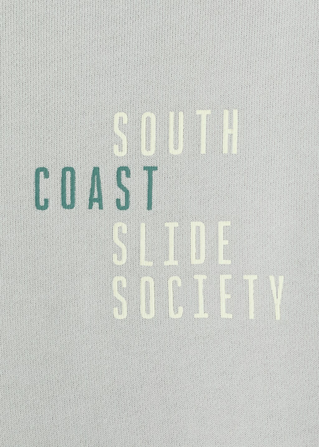 100% cotton fabric. Straight design. Round neck. Long sleeves. Ribbed collar, cuffs and hem. Text printed on the side.