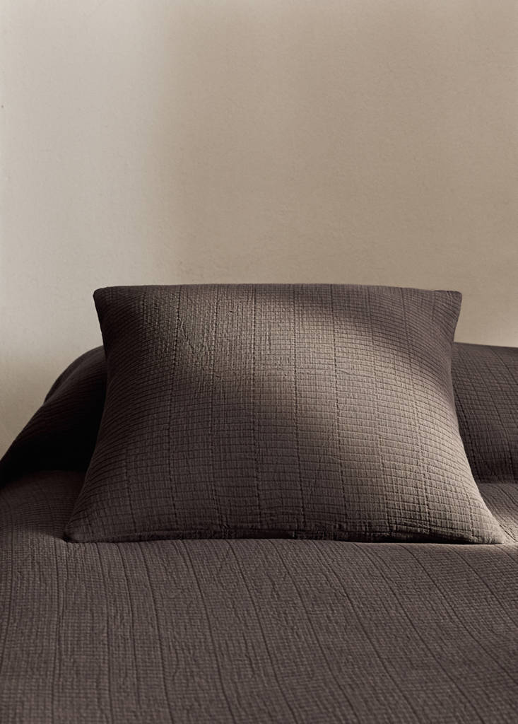 Made in PortugalGarment-dyed cushion cover with hem 50x50 cmCurrent price [€ 39,99 ]€ 39,99Select a colourBrownSelect your size50x50cmNot available. I want it!Notify meAdd to WishlistSee lookFree delivery to store100% Cotton. Size: 50x50cm. Hem: 2 cm. Garment-dyed fabric. Soft and comfortable texture to the touch. Textured fabric. Matching quilt availableDetails, composition and careStore availability