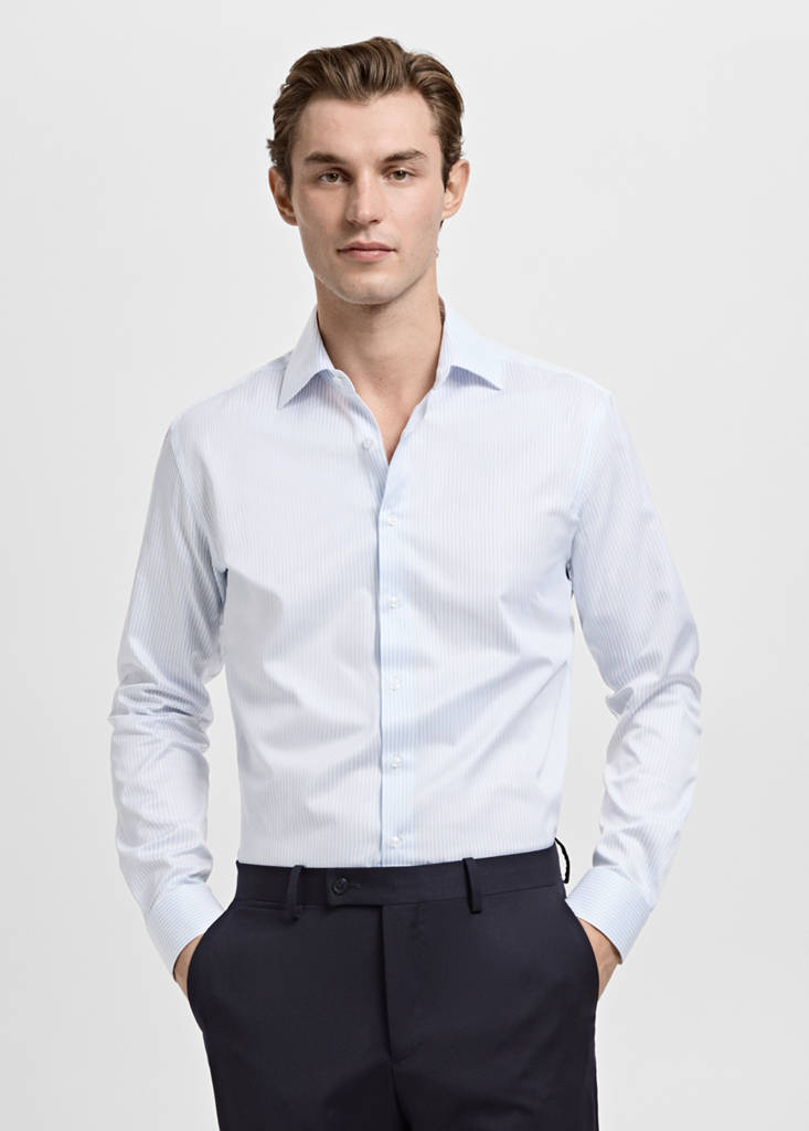 Slim fit cotton suit shirtCurrent price [€ 59.99 ]€ 59.99Select a colourWhiteThe model is wearing size M and is 188cm tall.Select your sizeXSNot available. I want it!SNot available. I want it!MNot available. I want it!LNot available. I want it!XLLast few items!DimensionsAddAdd to your wishlistSee lookFree delivery to storeSlim fit. 100% cotton fabric. Shirt collar. Front closure with buttons. Long sleeves with buttoned cuffsDetails, composition and careStore availability