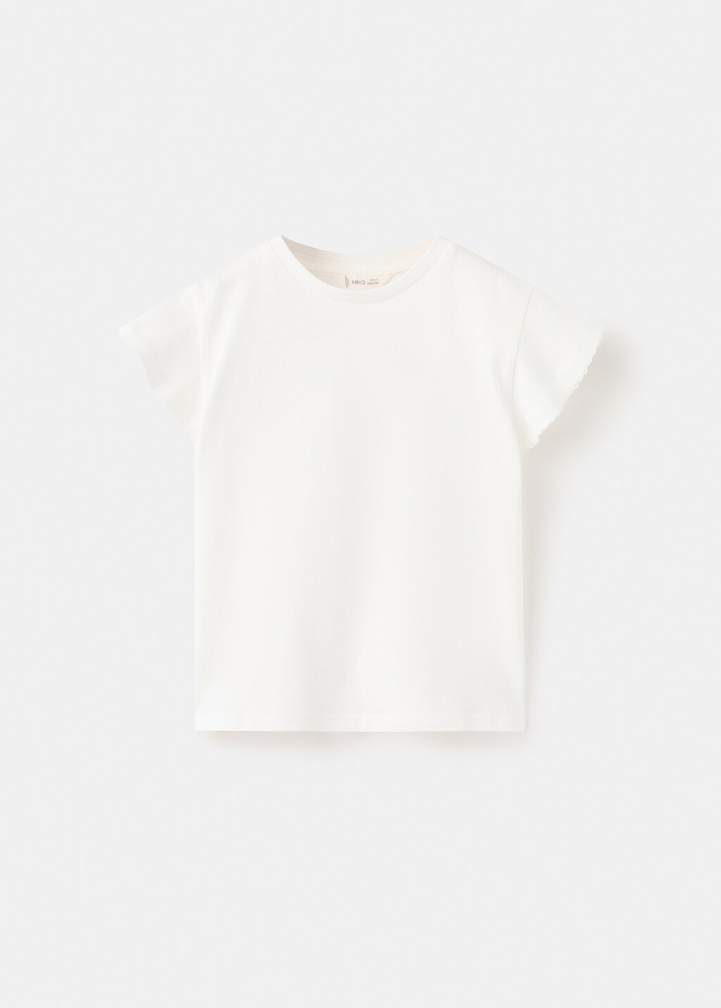 Dieses Kleidungsstück aus 100 % Baumwolle verfügt über einen geraden Schnitt mit Rundhalsausschnitt. Die kurzen Ärmel sind mit Ziernähten versehen, die einen unverwechselbaren Akzent setzen