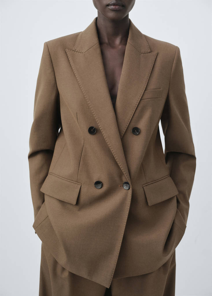 Woll-Mischgewebe. Gerades Design. Hemdkragen mit Revers. Kerbrevers. Lange Ärmel mit Knopfmanschetten. Brustleistentasche. Zwei Pattentaschen vorne. Rückenschlitz am Saum. Zweireihiger Verschluss. Innenfutter. Total Look. Selection-Kollektion