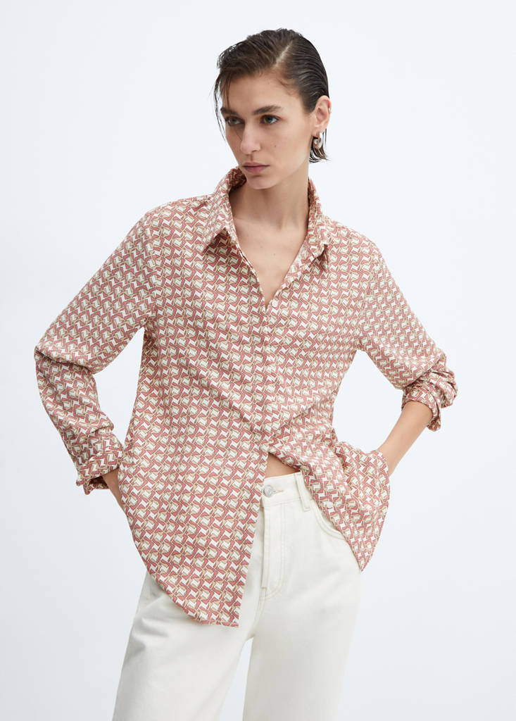 Fließender Stoff. Gerades Design. In uni oder gemustert erhältlich. Hemdkragen. Knopfverschluss vorne. In Plus-Size erhältlich. Büro-Looks. Geknöpfter langer Ärmel