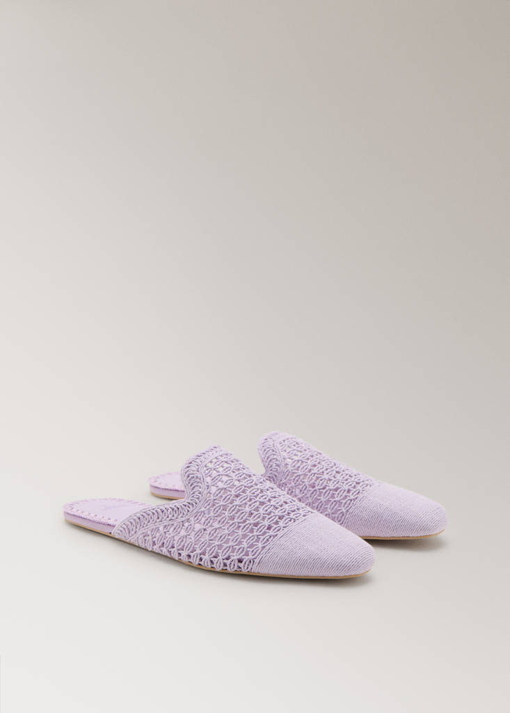 Mules in Häkel-OptikAktueller Preis [55,99 € ]55,99 €Wählen Sie eine FarbeLilaWählen Sie Ihre Größe363738394041MaßeHinzufügenAls Favorit speichernLook ansehenKostenloser Versand in das GeschäftHäkelgewebe. Kombiniert Komfort und Stil. Ideal für kalte Tage zu HauseDetails, Zusammensetzung und PflegehinweiseVerfügbarkeit im Geschäft