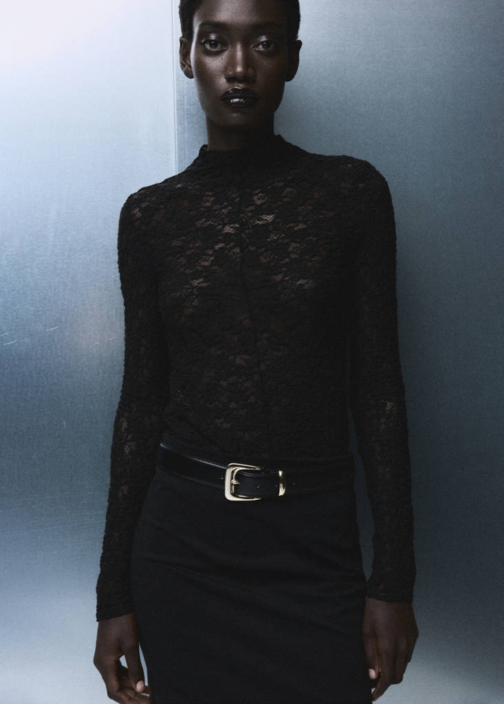 Spitzenstoff. Tailliertes Design. Perkins-Kragen. Lange Ärmel. Dieses Kleidungsstück gehört zu unserer Party- und Event-Kollektion, die entworfen wurde, um deine Looks bei besonderen Anlässen zu veredeln.