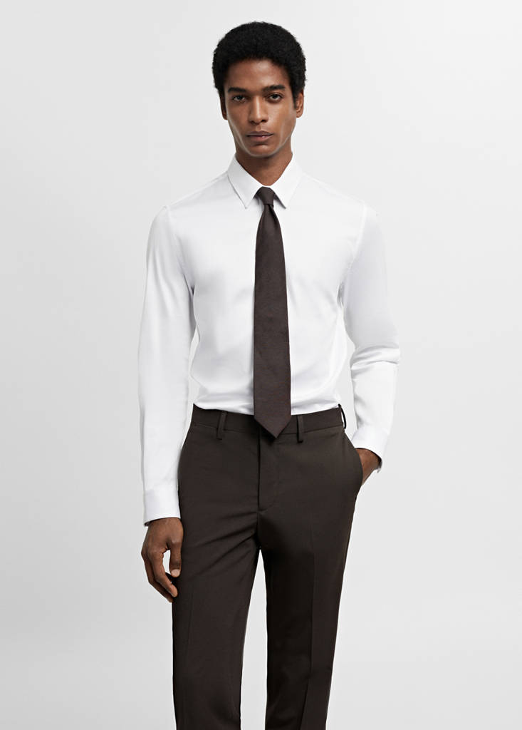 Die Stoffoberfläche dieses Hemdes wurde speziell behandelt, damit es sich besser und einfacher bügeln lässt und ab der ersten Wäsche weniger Falten entstehen. Dauer: 30/40 Waschgänge.