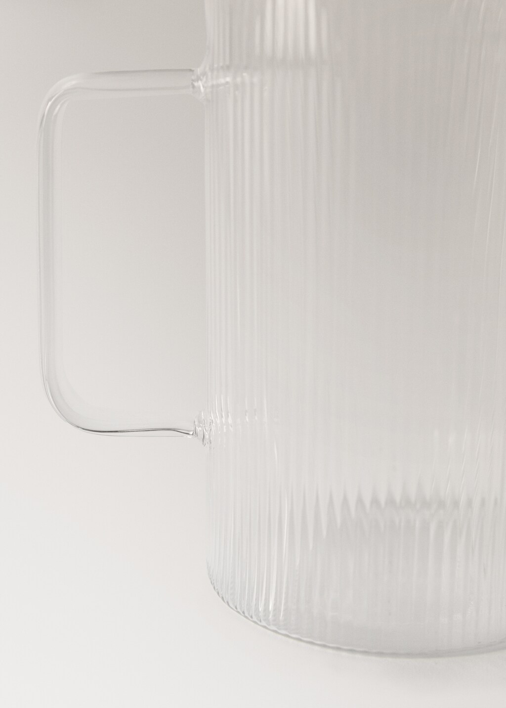 100% Borosilikatglas. Transparentes Design. Linien-Detail. Minimalistisches und funktionales Design. Kann Flüssigkeiten enthalten. Verleiht deinem Tisch einen Hauch von Einfachheit und Eleganz. Passt zu weiteren Produkten der Kollektion. Spülmaschinenfest.
