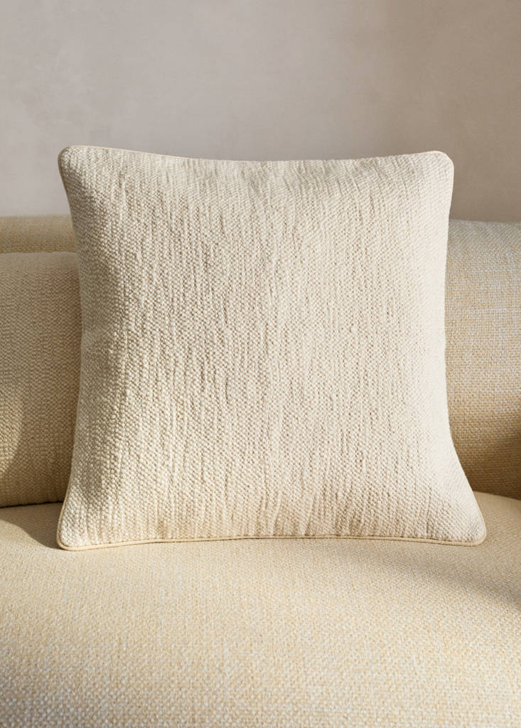 100 % Baumwolle. Größe: 50x50cm. Kantenverarbeitung, die einen dekorativen Akzent setzt und durch Verhindern von Ausfransen die Langlebigkeit des Produkts erhöht. Strukturierte Baumwolle. Verfügbar in zwei Größen. Füllung nicht enthalten