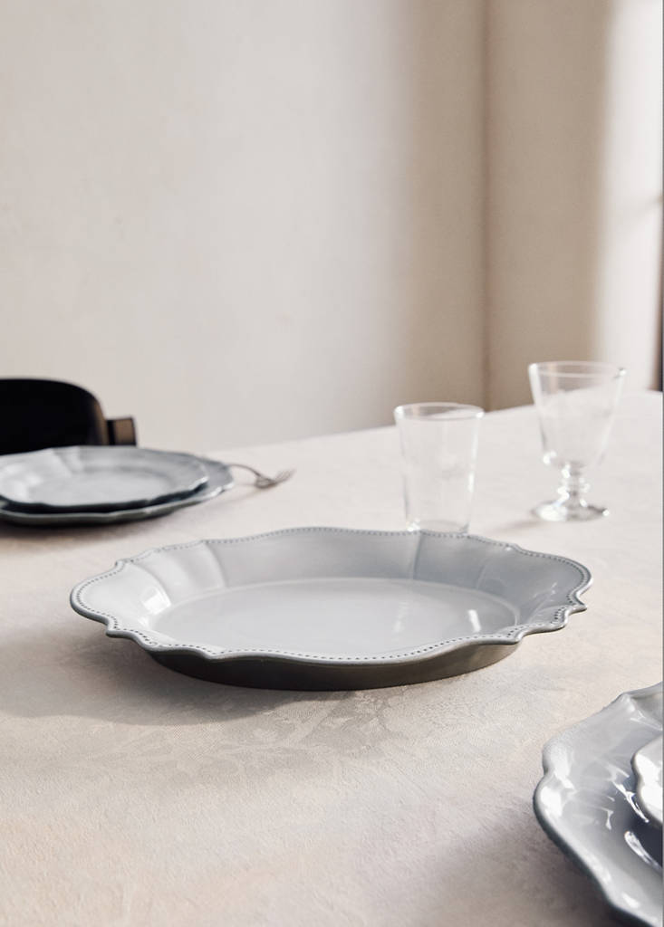 Durchmesser 35 cm. 100% Steinzeug. Hochwertige und strapazierfähige Materialien. Ovales Design. Die Ränder sind dekorativ und gewellt, wodurch das Produkt eine elegante und klassische Optik erhält. Der Rand ist mit einer Reihe kleiner Reliefpunkte verziert, die den edlen Stil betonen. Ideal, um jedem Tisch einen raffinierten und zeitlosen Touch zu verleihen. Kombinierbar mit weiteren Produkten der Kollektion. Geschirr aus recyceltem Steingut, hergestellt in Portugal. Mindestens 70 % des Endprodukts werden durch die Wiederverwendung von Rohstoffen und den verantwortungsvollen Umgang mit Wasser im Einklang mit der Umwelt recycelt