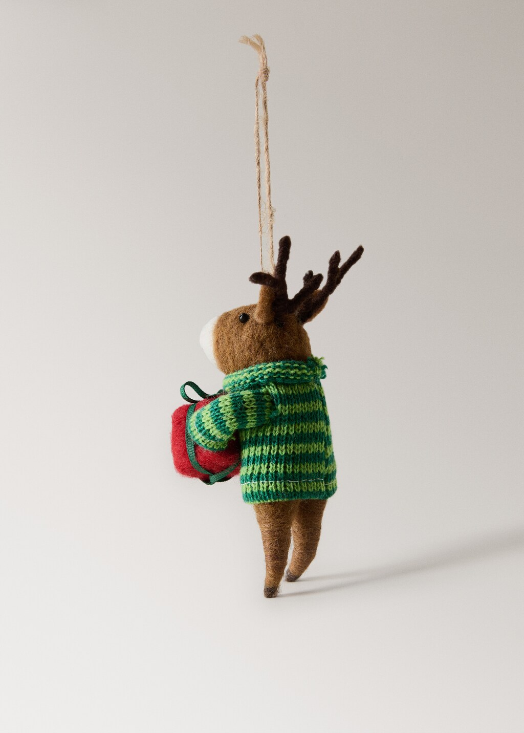 100 % Filz. Durchmesser: 6 cm. Höhe: 16 cm. Breite: 4,5 cm. Dekorative Figur, die ein freundliches Rentier darstellt, entworfen mit weichen Materialien wie Filz. Sein Rentier-Design verleiht einen festlichen und charmanten Touch, ideal um eine warme und verspielte Atmosphäre in der Weihnachtsdekoration zu schaffen.. Passt zu weiteren Produkten der Kollektion. Weihnachtskollektion.