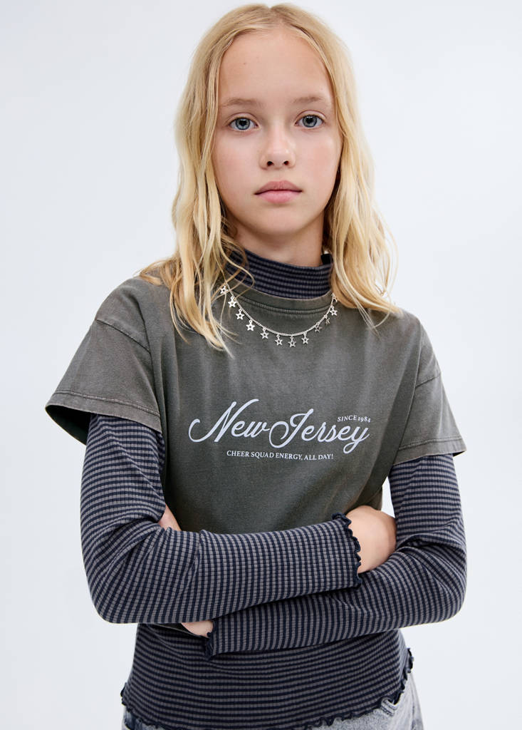 100% Baumwolle. Top-Effekt. Gemustertes Design auf der Vorderseite. Rundhalsausschnitt. Raglanärmel