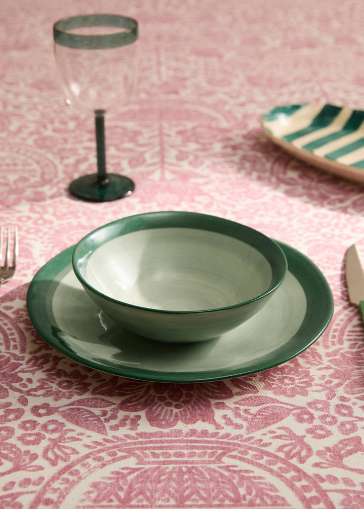 100 % grès. Largeur : 15,5 cm. Diamètre : 5,5 cm. Bol réalisé suivant la technique spin wash, peint à la main au Portugal, avec une finition originale et colorée pour apporter une touche distinctive à votre table. Motif peint à la main. Il peut y avoir de légères variations d'un modèle à l'autre. Disponible en trois couleurs