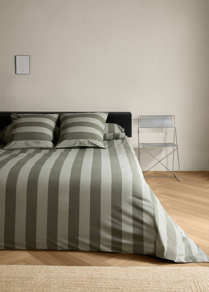 Lit 180/200cm. Dimensions : 260x240 cm. 100 % coton. 200 fils. Motif rayé. Frais, doux, durable, respirant, polyvalent. Design bicolore. Idéal pour ceux qui cherchent à allier style et confort dans leur espace de repos. Ajoute une touche sophistiquée et confortable. À combiner avec d'autres articles de la collection. Ce produit n'inclut pas les taies d'oreiller