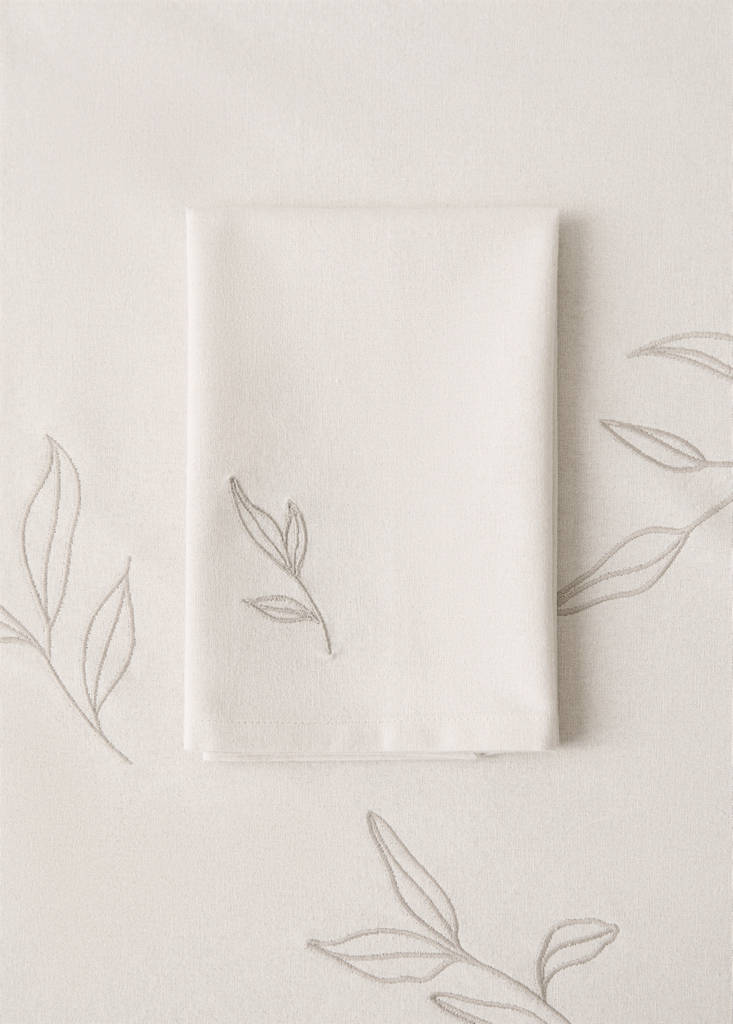 Pack de 2. Feuilles décoratives. Associez-les à la nappe de la même collection pour apporter harmonie et équilibre autour de la table. Nappes et serviettes de table assorties. Apportez un style raffiné et naturel à votre salle à manger avec notre nappe. Le motif de feuilles brodées ajoute un détail artistique et élégant qui fera de chaque repas une occasion spéciale. Idéale pour ceux qui apprécient la qualité et le bon goût dans les détails de la maison. Taille : 45x45cm. Tissu 100 % coton