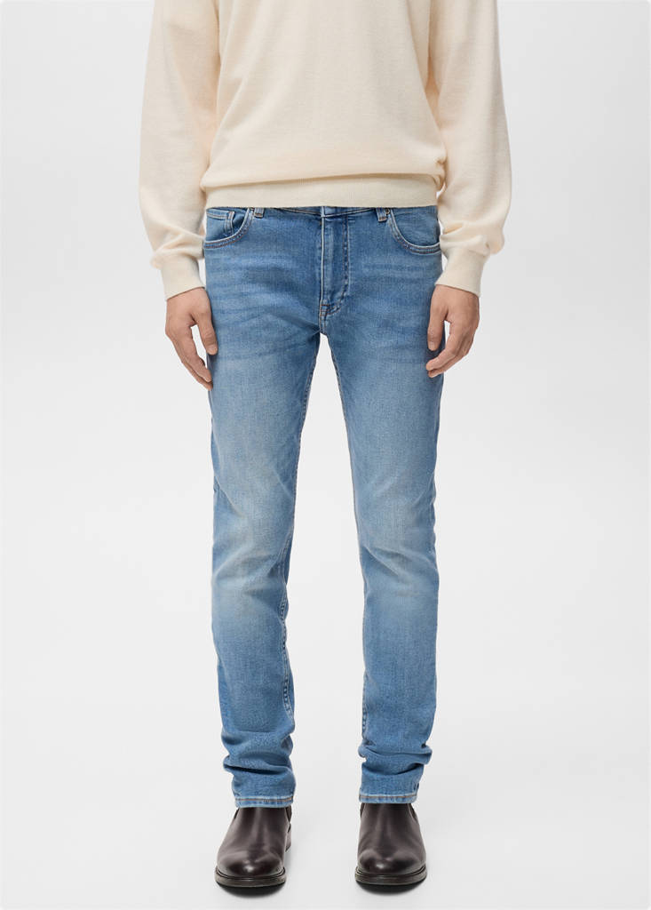 Coupe skinny : le jean le plus ajusté. Style jean. Tissu de coton. Délavé moyen. Passants pour ceinture. Fermeture éclair et bouton. Deux poches latérales. Poche gousset. Deux poches plaquées à l'arrière