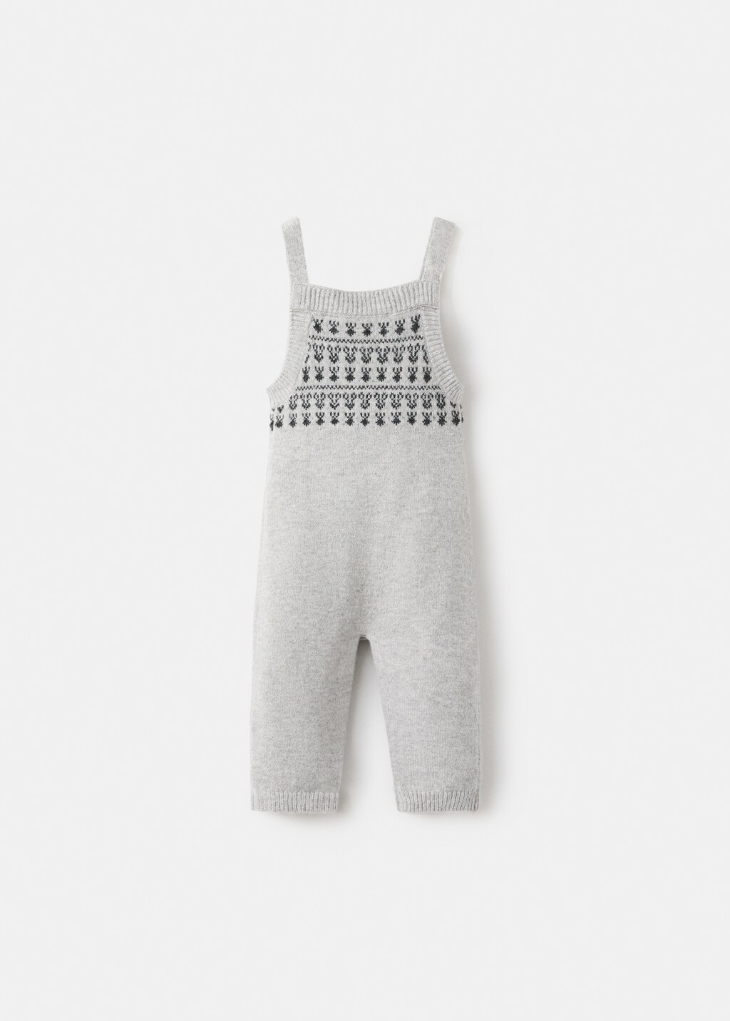 Tissu en maille. Design long. Col droit. Bretelles avec fermeture à bouton. Bordure brodée sur la poitrine. Ouverture en bas avec fermeture à boutons. Cardigan coordonné. Total look.