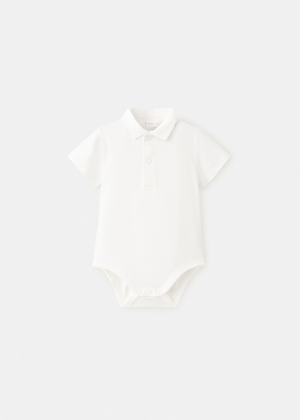 Confectionné dans un tissu en coton, ce body présente un col polo avec fermeture boutonnée et des manches courtes. Il inclut une fermeture pratique à boutons sur la partie inférieure pour plus de confort