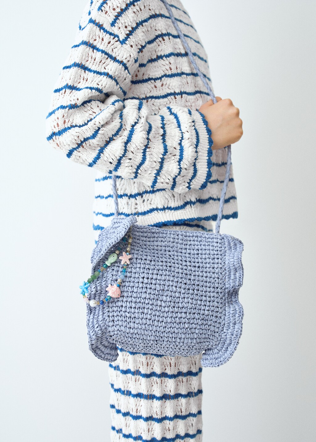 Crafted from 100% cotton fabric, this long, straight design features a striped openwork knit. The scalloped details complete the total look.