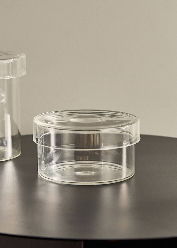 100% borosilicate. 11cm diameter. Height 6 cm. Bathroom decor box. With lid. Its elegant design will add a touch of sophistication to your bathroom. Available in various sizes. Coordinates with more products from the collection