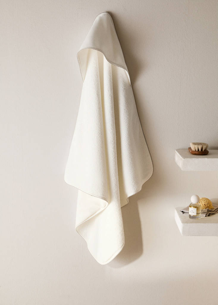 100% Cotton. Size: 80x80cm. Weight: 400g. Children's bath cape made from 100% cotton, ensuring softness and comfort for delicate children's skin. With a grammage of 400 g/m², it is lightweight yet sufficiently absorbent, ideal for effective drying after a bath. Available in two colours