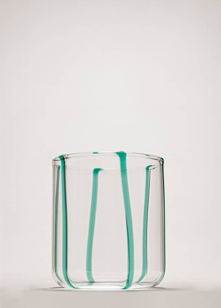 100% borosilicate glass. Diameter: 8 cm. Height: 12 cm. Striped design. Available in more colours. Dishwasher safe. Ideal for adding a different and colourful touch to your table