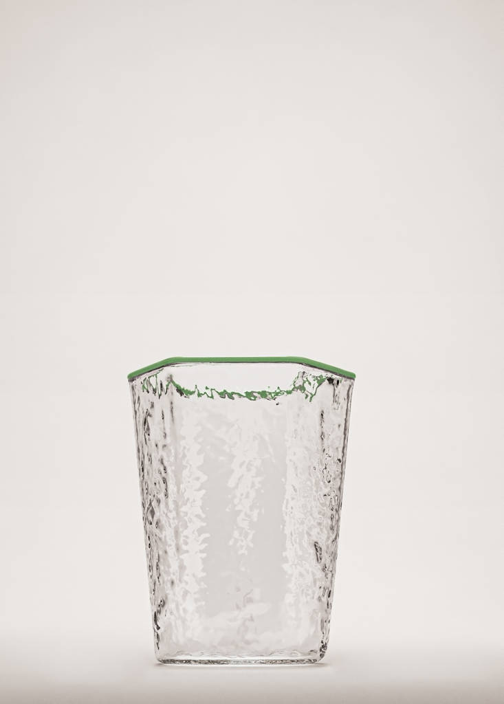 BOROSILICATOHammered borosilicate glass with coloured edgeCurrent price [€ 8.99 ]€ 8.99Select a colourGreenSelect your sizeOne sizeAddAdd to your wishlistSee lookFree delivery to store100% borosilicate glass. Size: 7.5x6.8x9.5 cm. Hammered effect glass. Colour detail on the edge. Available in more coloursDetails, composition and careStore availability